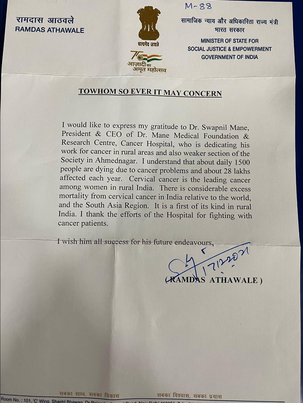 | 14 | veteran Actor Shabana ji Azmi mam conferred " Healthcare Award for Services in Rural Area for Cancer Prevention and treatment | Jio Convention center ,Mumbai | 31-07-2022 | View |