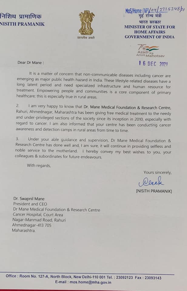| 12 | Rotary club of mumbai Khar Conferred award for Preventive and curative cancer service | Rahuri | 26-05-2022 | View |