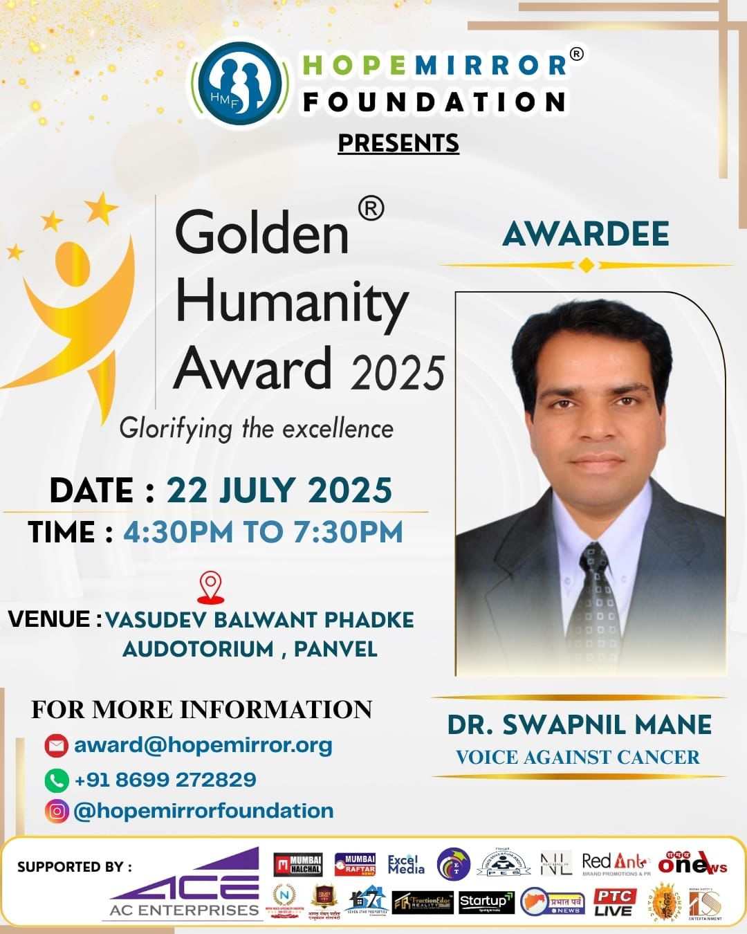 | 1 | Golden Humanity Award | V B Phadake Auditorium, Panvel | 22-07-2025 | View |
