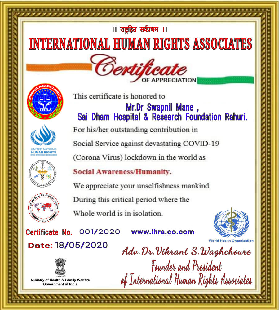 | 8 | Dr. Vikrant S. Waghchoure | Founder & President | Internationational Human Rights Associates | 18-05-2020 | View |